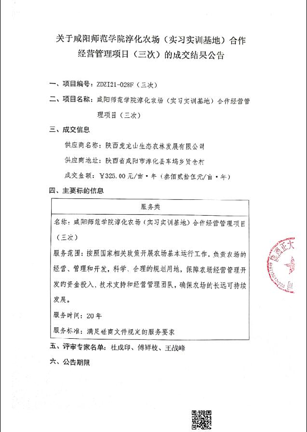 DB电竞淳化农场(实习实训基地)合作经营管理项目(三次)成交结果公告