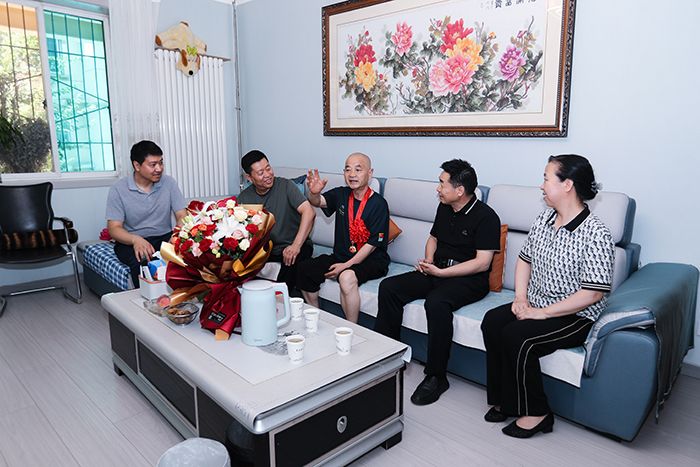 在祁允中家中,王长顺与老党员促膝而坐、亲切交谈,为他佩戴“光荣在党50年”纪念章。他介绍了学校目前的发展情况,认真听取老干部提出的意见和建议,对他多年来为学校发展做出的贡献表示感谢,同时对他矢志不渝跟党走、无私奉献学校的高尚情怀表示敬意,并反复叮嘱要好好保重身体,继续为学校发展贡献余热。
