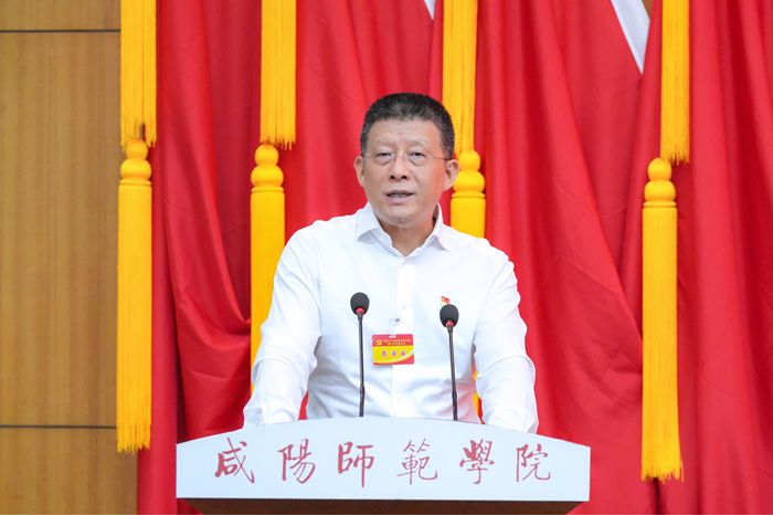 王长顺在致辞中代表大会主席团向莅临大会的各位领导和嘉宾表示热烈的欢迎,向出席大会的学校历任老领导和离退休老同志致以崇高的敬意,向长期以来与我们肝胆相照、并肩奋斗的各民主党派和无党派的同志们表示衷心的感谢。他指出,自2018年10月我校第二次党代会以来,在省委、省政府和省委教育工委、省教育厅的正确领导下,在咸阳市委、市政府的大力支持下,学校党委始终坚持以习近平新时代中国特色社会主义思想为指导,全面贯彻党的教育方针,紧紧围绕立德树人根本任务,把方向、管大局、作决策、抓落实、保稳定,团结带领全校师生员工,求真务实,开拓进取,不断推进学科建设、教育教学改革、科学研究和科技成果转化,持续深化干部人事制度、绩效分配制度改革,学校办学治校能力显著增强。他表示,要以此次党代会为契机,动员和激励广大党员干部及师生员工统一思想、凝聚共识、深化改革、锐意进取,为建设教师教育特色鲜明的一流应用型大学而努力奋斗。他希望各位代表能够站在更高的政治高度,以强烈的责任感和使命感,认真履行代表的职责,共商大计,共谋发展。