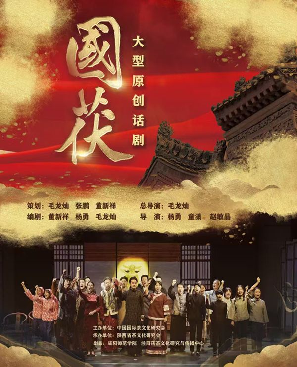 《国茯》由我校泾阳茯茶文化研究与传播中心董新祥、杨勇、毛龙灿编剧,校学生话剧团演出,本次排演总策划毛龙灿、张鹏、董新祥,导演杨勇、童潇、赵敏晶。从2021年6月首演以来,先后在西安、咸阳、泾河新城等地进行了十余场演出,中央和地方20多家媒体进行了报道,赢得了广泛好评。