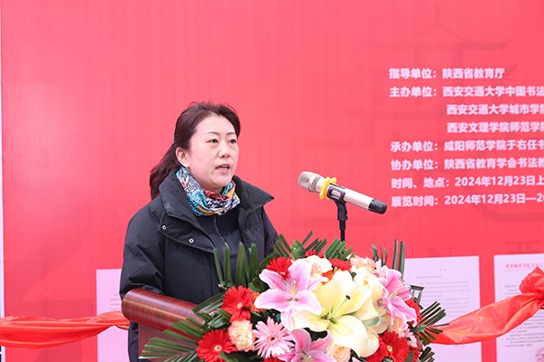 开幕式上,副校长姚波在致辞中对省委教工委和教育厅的正确领导表示感谢,向兄弟院校的领导和同仁参加活动表示热烈欢迎。他简要介绍了咸阳师院书法学专业建设与发展现状及取得的成绩。他指出,10所高校书法教育同仁要以此次研讨会和作品展为契机,加强交流与合作,积极适应新时代教育数字化的形势,提高书法学教育教学质量,为陕西书法学科改革与发展、书法人才培养、服务陕西书法文化繁荣作出新的更大的贡献。