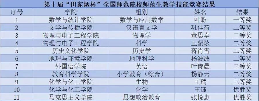 学校2024年获批陕西省高等教育教学成果奖一等奖1项,基础教育教学成果特等奖1项,二等奖2项,实现了基础教育教学成果特等奖等次零的突破。荣获陕西省高校青年教师教学竞赛二等奖1项,三等奖1项。在“田家炳杯”第十届全国师范院校师范生教学技能竞赛中,我校共有8名学生入围决赛,入围数量位列全国第三,最终荣获一等奖1项、二等奖7项,三等奖2项,优胜奖1项,获奖数量位列全省第一。学校严格对照认证标准,整合优势资源,汉语言文学等7个专业顺利完成教育部师范类专业二级认证专家进校考察。