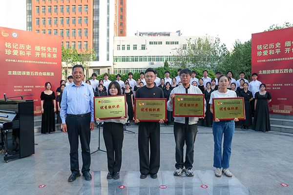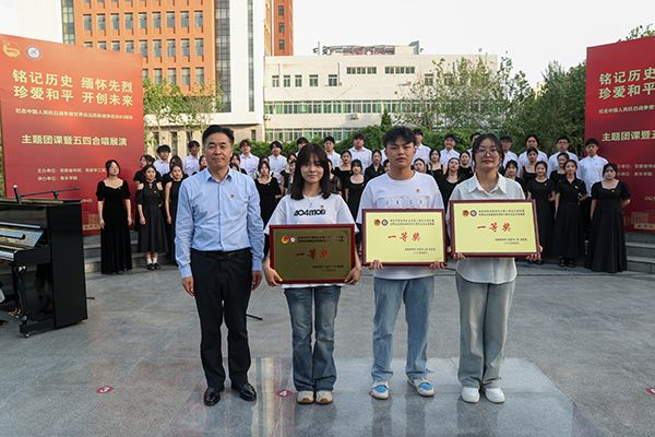 4月29日,在五四青年节即将到来之际,以“铭记历史 缅怀先烈 珍爱和平 开创未来”为主题的纪念中国人民抗日战争暨世界反法西斯战争胜利80周年主题团课暨五四合唱展演在我校秦池湖畔圆形广场举行。校党委书记王长顺、校党委副书记袁也出席活动。