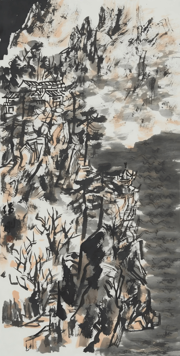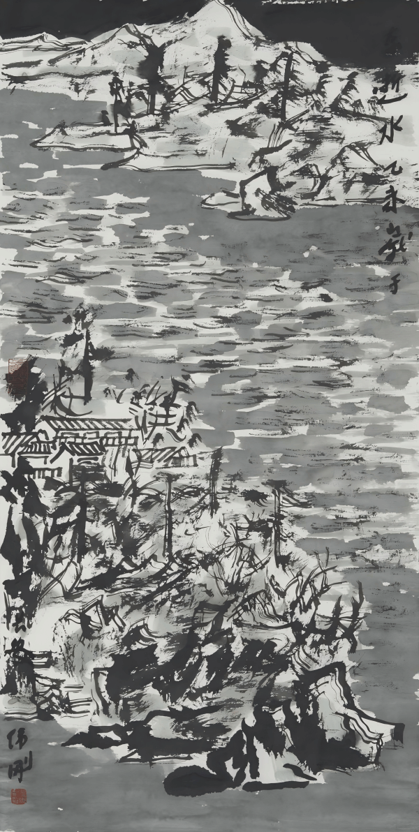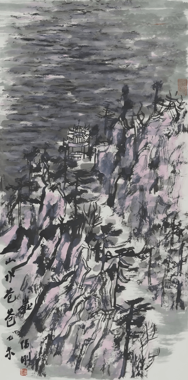 此次入选的三幅作品《东逝水》《山水》《山水苍苍》将传统山水画的笔墨韵味与时代精神相融合,在展现自然之美的同时,凸显了劳动者在祖国大地上挥洒汗水、铸就辉煌的奋斗历程。作品以山水的雄浑气韵隐喻工人阶级的奋斗品格,展现出“以形写神”的艺术追求,实现了艺术审美与思想内涵的双重升华。