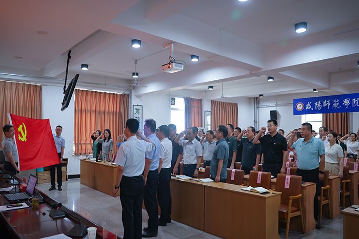 党课开讲前,王长顺与全体党员面向党旗,重温了入党誓词。