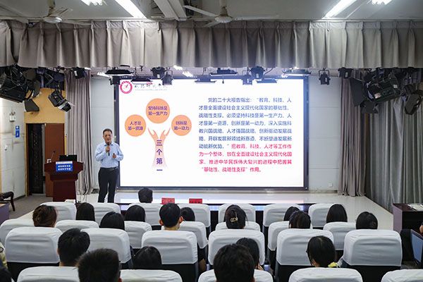 9月8日下午,我校首届硕士研究生入学教育报告会在弘道楼多功能厅举行。校党委书记王长顺出席并为全体新生讲授“入学教育第一课”。研究生院负责人汪生辉主持报告会。