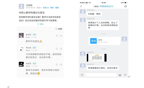 经过前期扎实的准备熟悉,到2月24日开课时,开展线上教学的教师都能够熟练运用网络教学平台上的资源、技术方式开展教学。