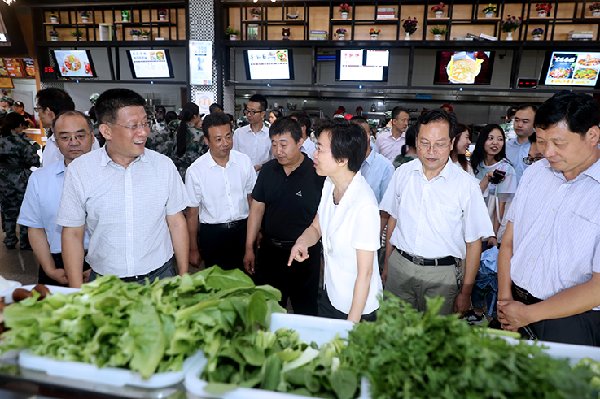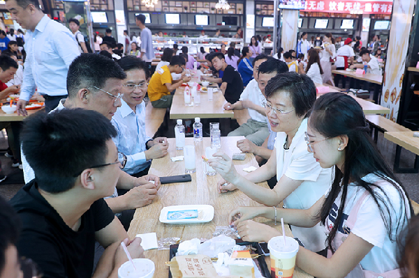 随后卫华来到我校学馨苑餐厅,察看学生的用餐环境和用餐情况,仔细询问食品原料来源和价格情况,与正在就餐的学生亲切交谈、共进午餐并合影留念。