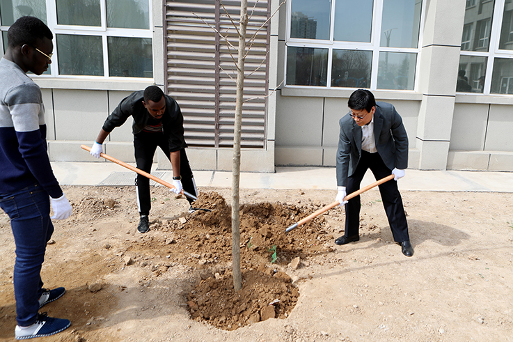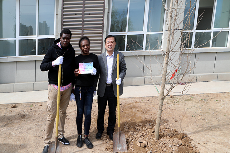 校领导与留学生、中国少数民族代表一起,种下一棵棵寄托着梦想和友谊的希望树、友谊树,留学生和少数民族学生代表将求学与生活的希望化作心愿写于纸上、投于瓶中、系于树根、深埋土里,祈愿把根留住,能像大树一样扎根中国大地,汲取中华文化营养,茁壮成长,成就绚丽多彩的人生。