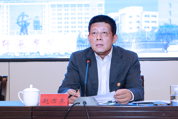 赵万东代表学校领导班子作了2018年工作述职报告,报告指出,2018年,学校党政领导班子在省委、省政府、省委教育工委、省教育厅的正确领导下,以党的十九大精神和习近平新时代中国特色社会主义思想为指导,深入落实全国教育大会精神,团结带领全校师生员工,奋发进取、担当作为,学校各项事业稳步发展。一是全面从严治党深入推进;二是领导班子能力建设不断加强;三是人才队伍建设成效显著;四是综合办学实力不断增强。赵万东表示,学校领导班子将会以更加饱满的精神状态、更加务实的工作作风,改革创新、砥砺奋进,担当作为、真抓实干,全面深化综合改革,以优异的成绩庆祝中华人民共和国成立70周年。
